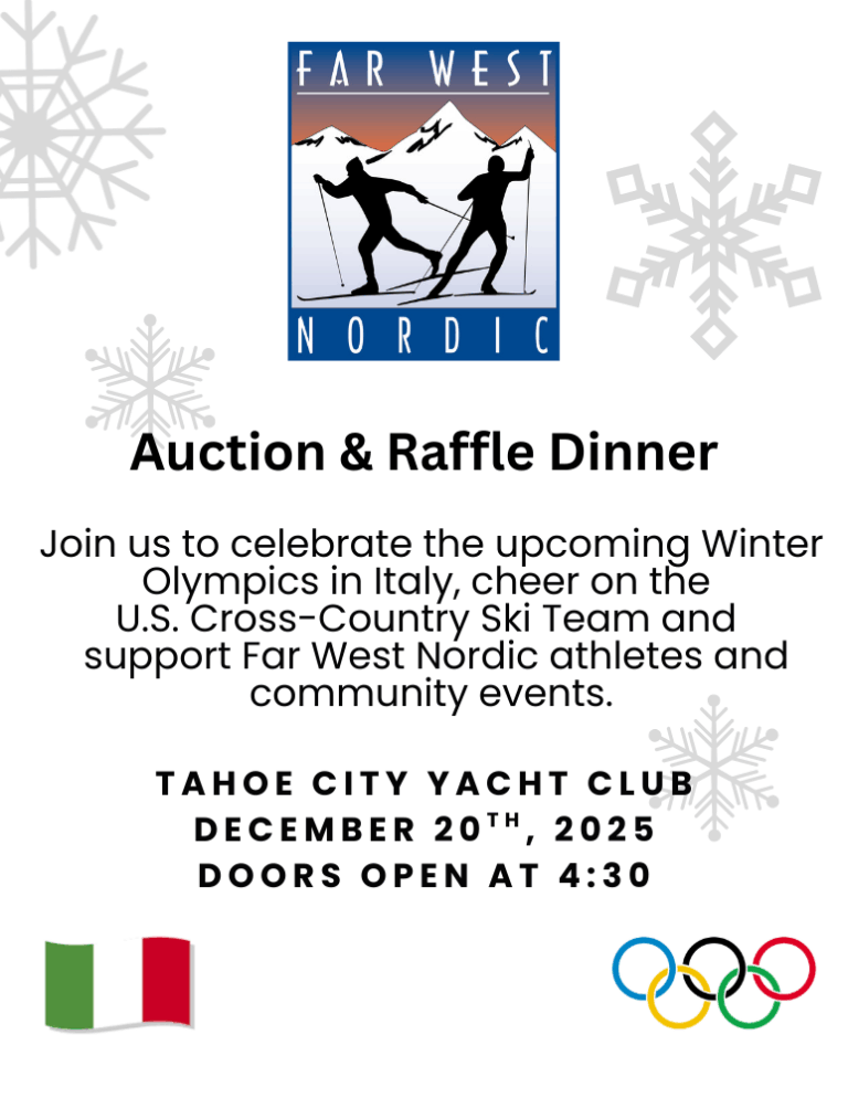 The 39th Annual Far West Nordic Auction & Dinner is this week, and we need your support to make this one of our strongest fundraisers yet. Join us for an Olympic-themed evening of community, celebration, and support for youth skiing across the Sierra.